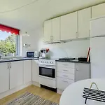 Situated about a 25-minute walk from Kulthuset pa Tustrup-gravpladsen, 8907-Allingabro-Rodklovervej-9 villa invites guests to relax at a terrace.